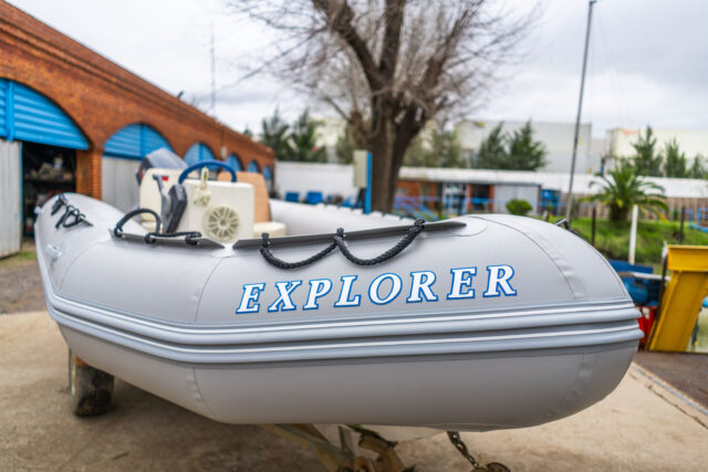 El bote semirrígido fue íntegramente reparado . Se hicieron los tubos de PVC completamente nuevos, se reparó de manera completa el casco, piso y espejo. Además, se realizó la pintura completa, y con estas tareas se logró poner en el río a una embarcación que estaba sin mantenimiento.